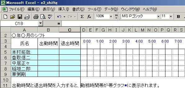 パートやアルバイトさん達の勤務時間帯を帯グラフ状に表示します。