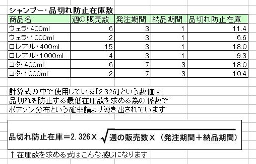 美容室でヘアケア商品のシャンプーを販売しています 出来るだけ常時在庫を減らしたいのですが、そうすると品切れを起こしてしまいます 何か良い方法ないでしょうか?・・・と、こんな質問をされたので ちょっと頑張って作って見ました