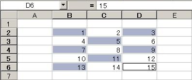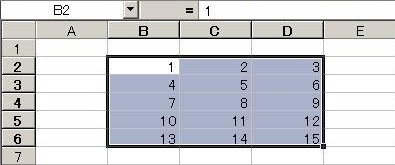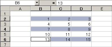 1〜3、7〜9、13〜15、 1行飛ばしで選択してみました、方法は次の通りです |