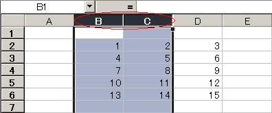 隣接するB列〜C列を選択してみました、方法は次の通りです |