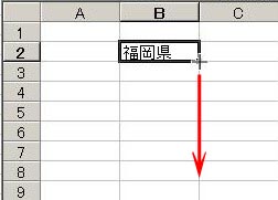 福岡県 と入力し、フィルハンドルをクリックしドラッグすると