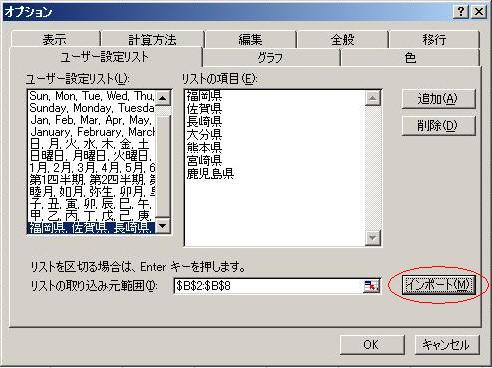 ”リストの項目(E)”と”ユーザー設定リスト(L)”に都道府県が追加されますので