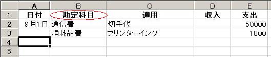 これは出納帳の1部分です 勘定科目の入力欄は、だいたい入力する文字が決まっているので ドロップダウンで選択入力出来るようにしてみましょう