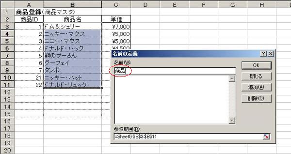 これで、選択されている商品B3〜B11の範囲に 商品 と名前が付けられました