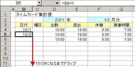 そして、10/28 のところまでフィルハンドルをドラッグします